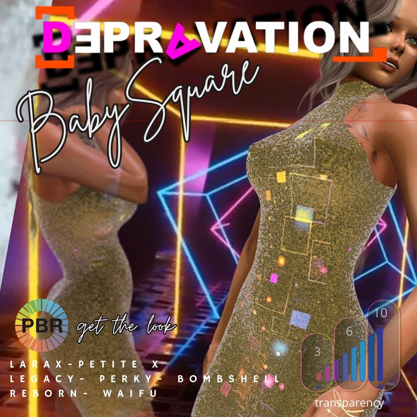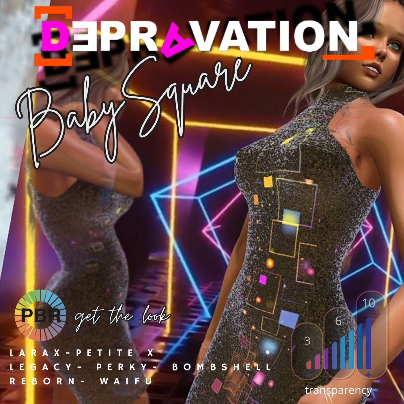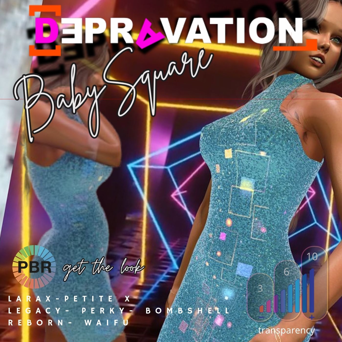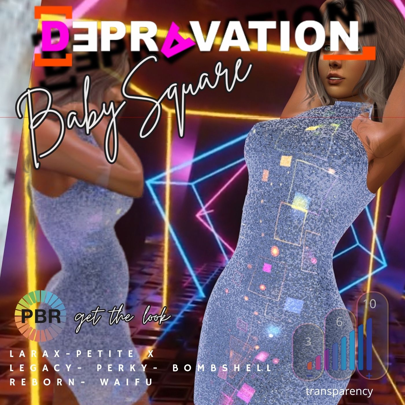 A short, sexy shining dress in 12 colors with sheer, light and glow effect