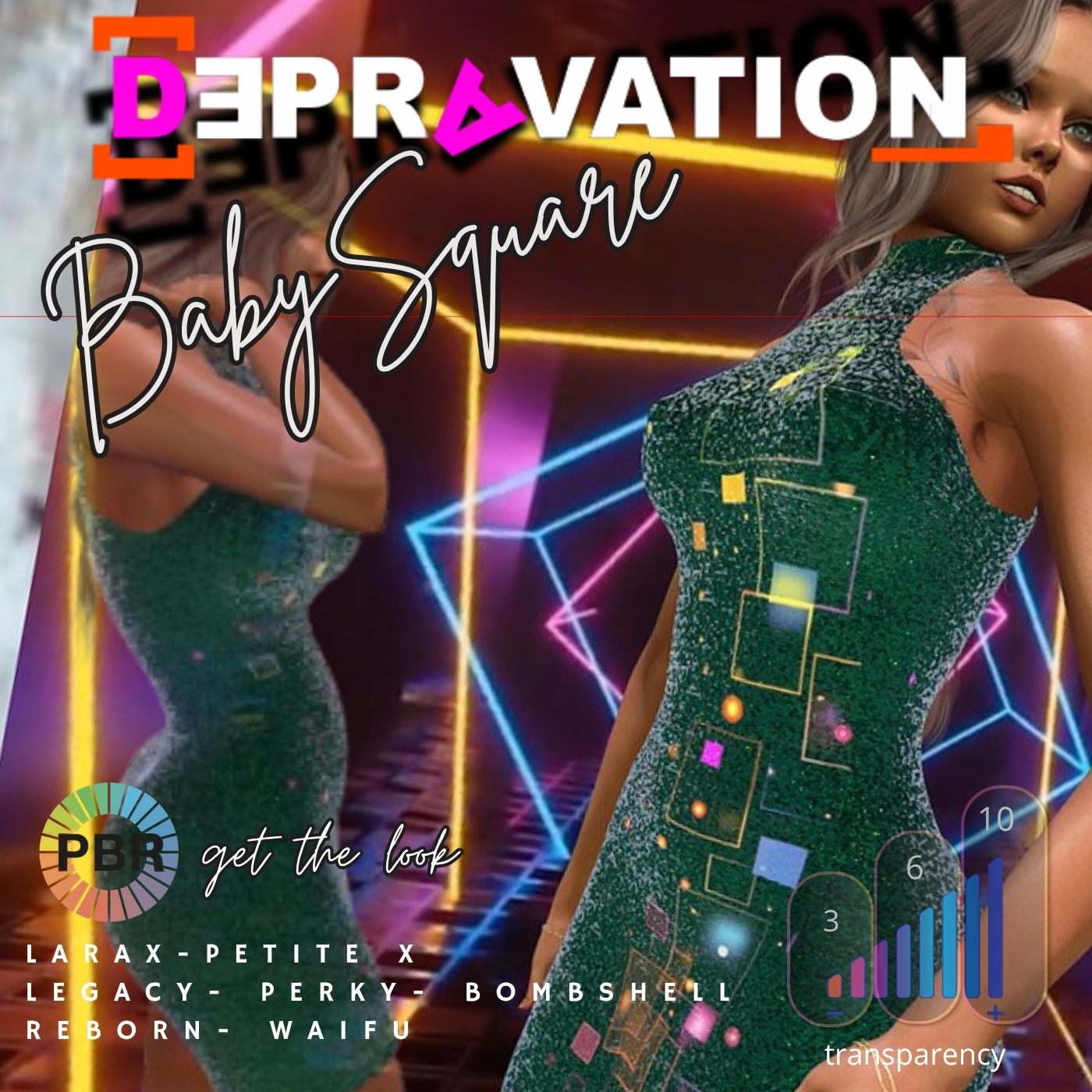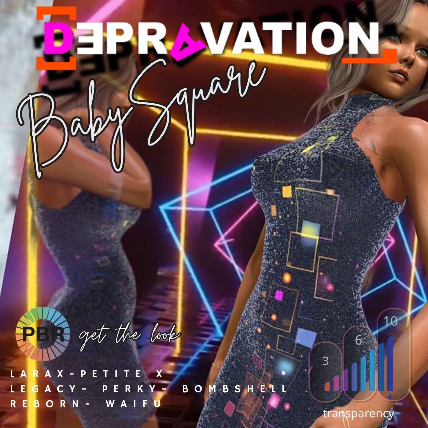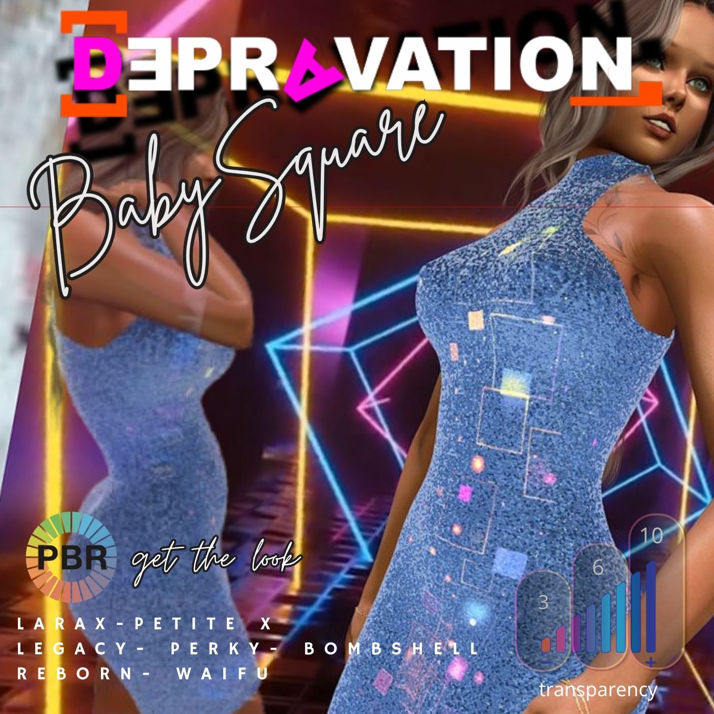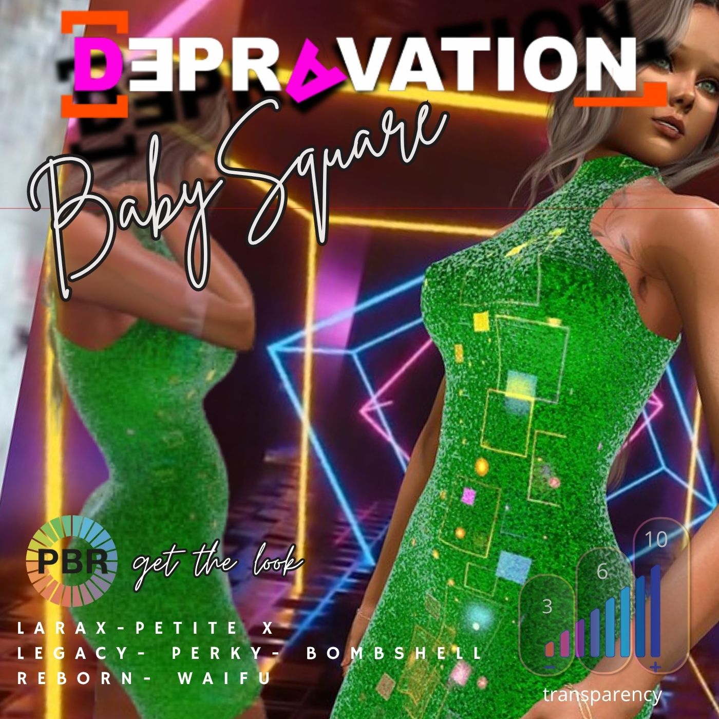 A short, sexy shining dress in 12 colors with sheer, light and glow effect
